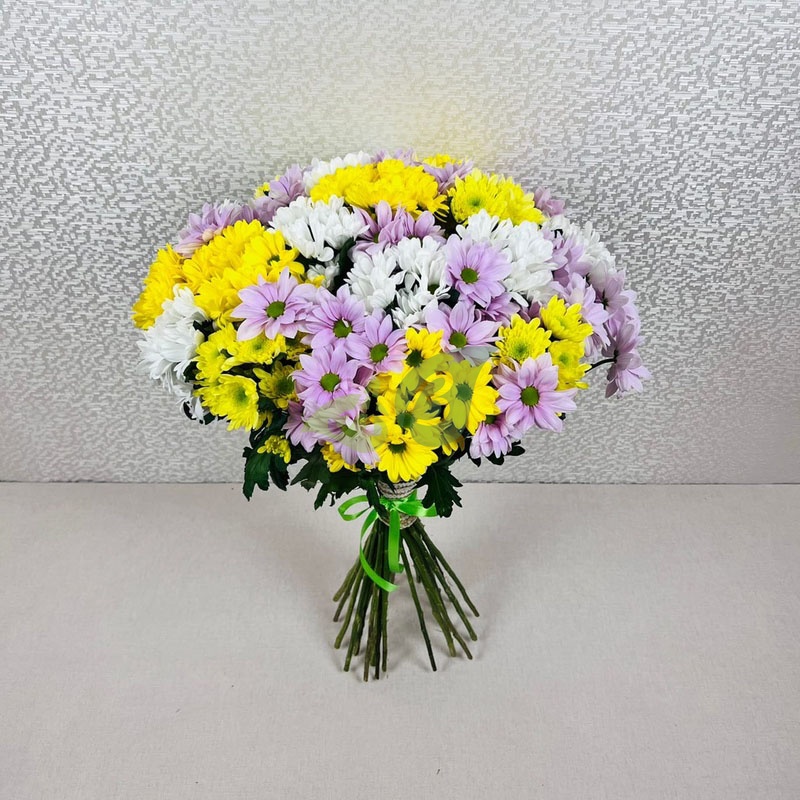 - Хризантема - 25 веток, цвет - разноцветный, длина стебля - 50-60 см;